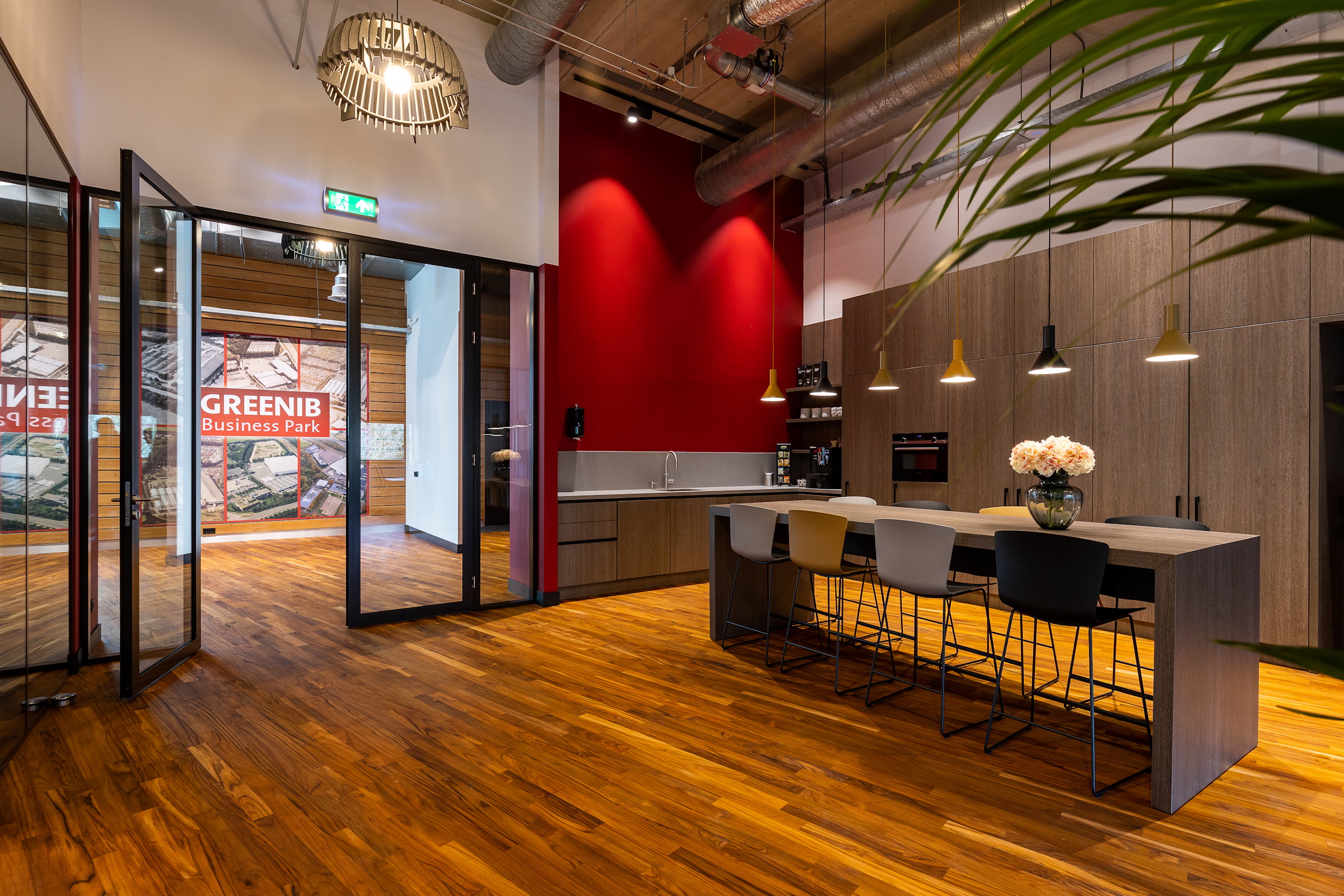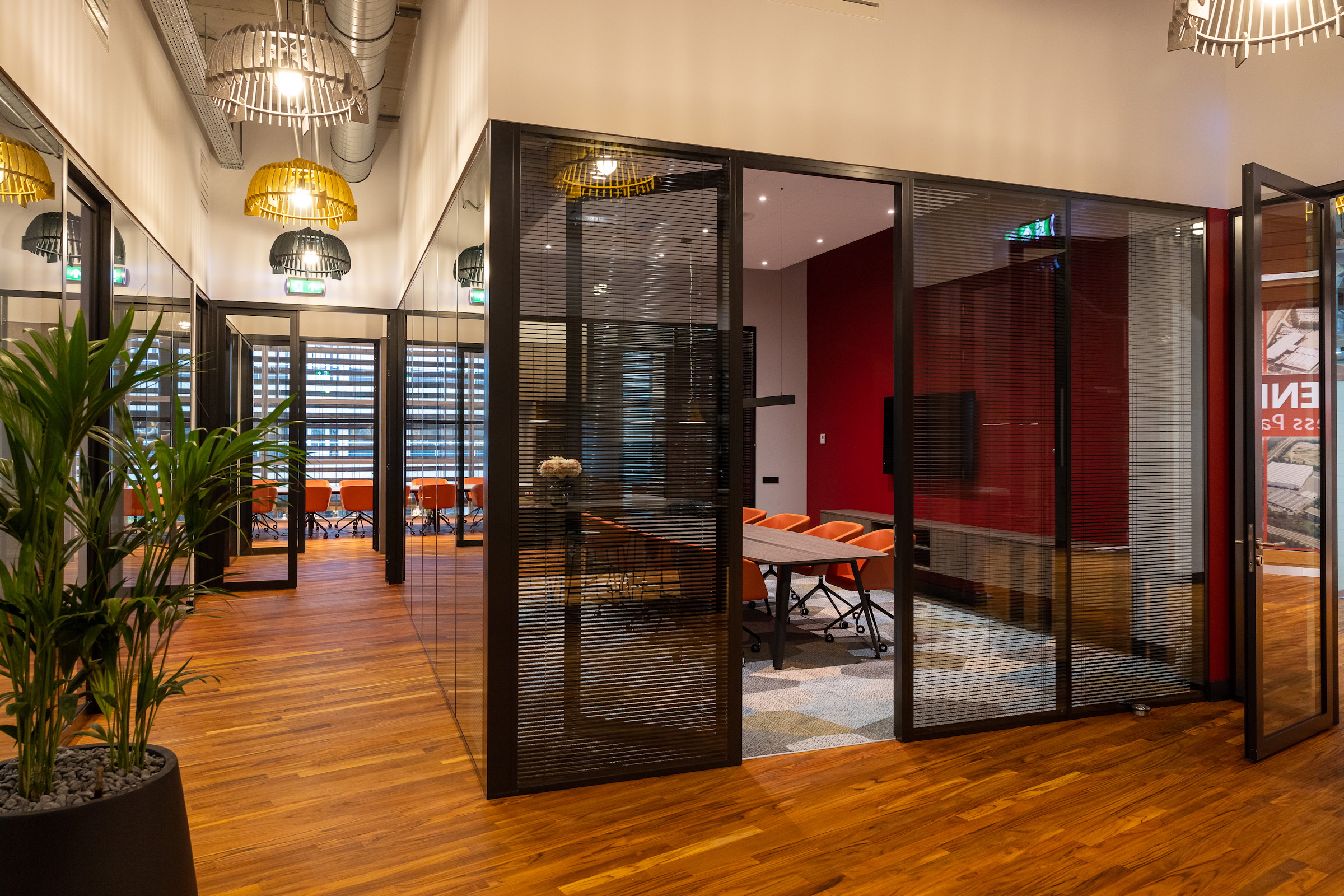 flexwerkplekken, vergaderruimtes en bedrijfsrestaurant