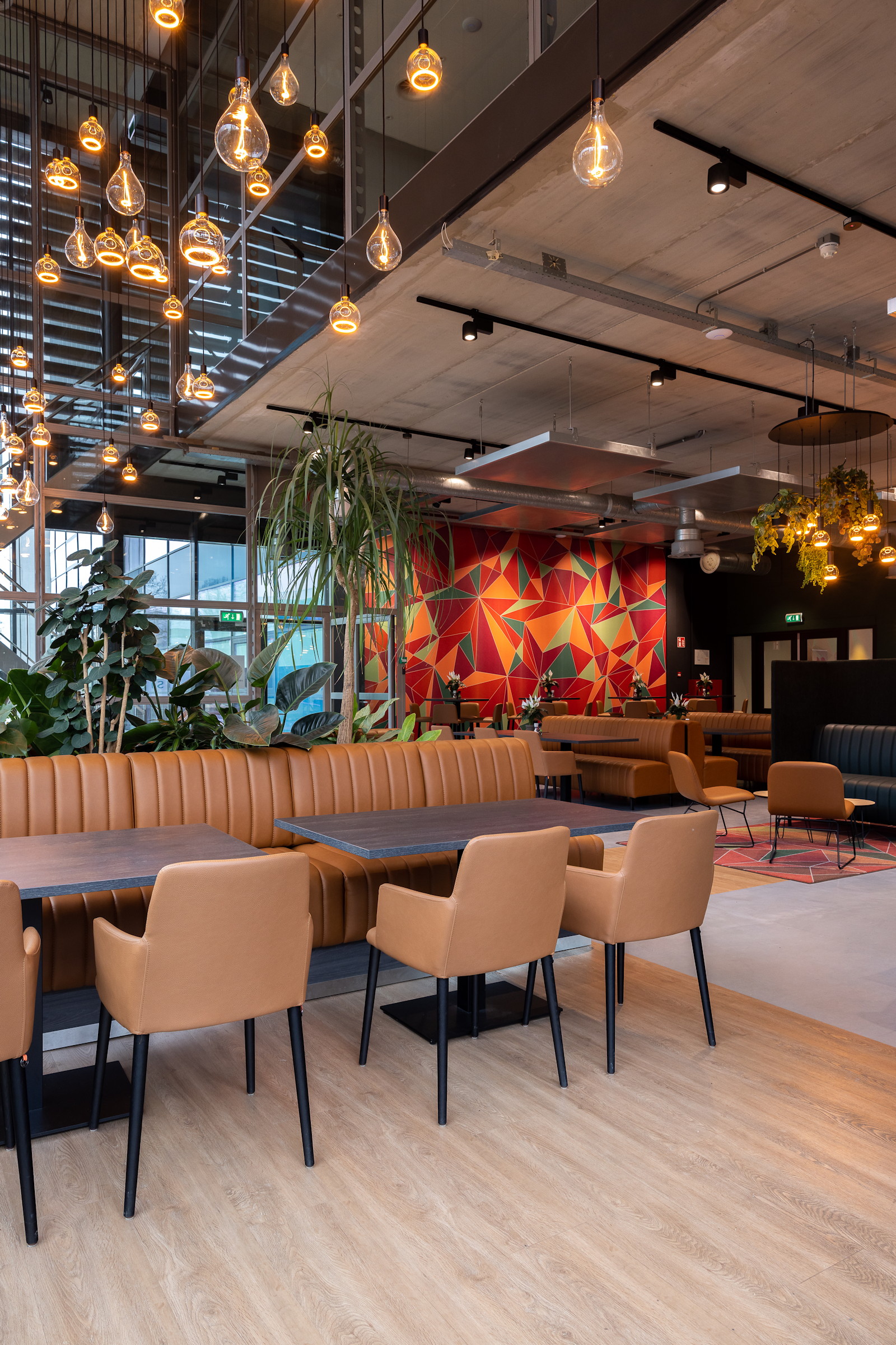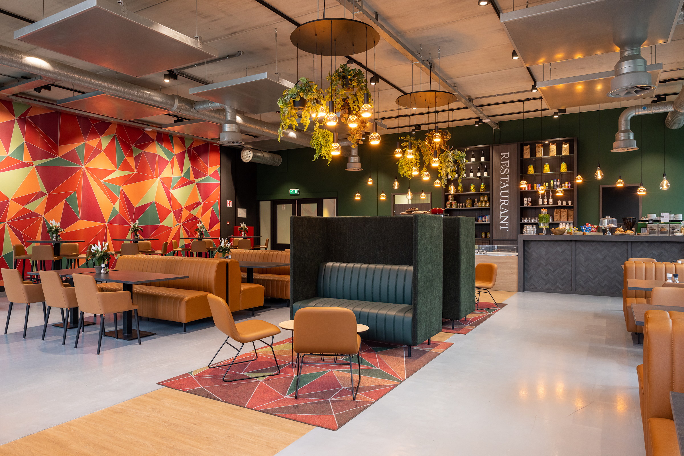 Op de begane grond hebben we een gezellig bedrijfsrestaurant ingericht voor de gebruikers van de omliggende kantoorgebouwen, wat ook een leuke plek geworden is voor de vrijdagmiddagborrel!