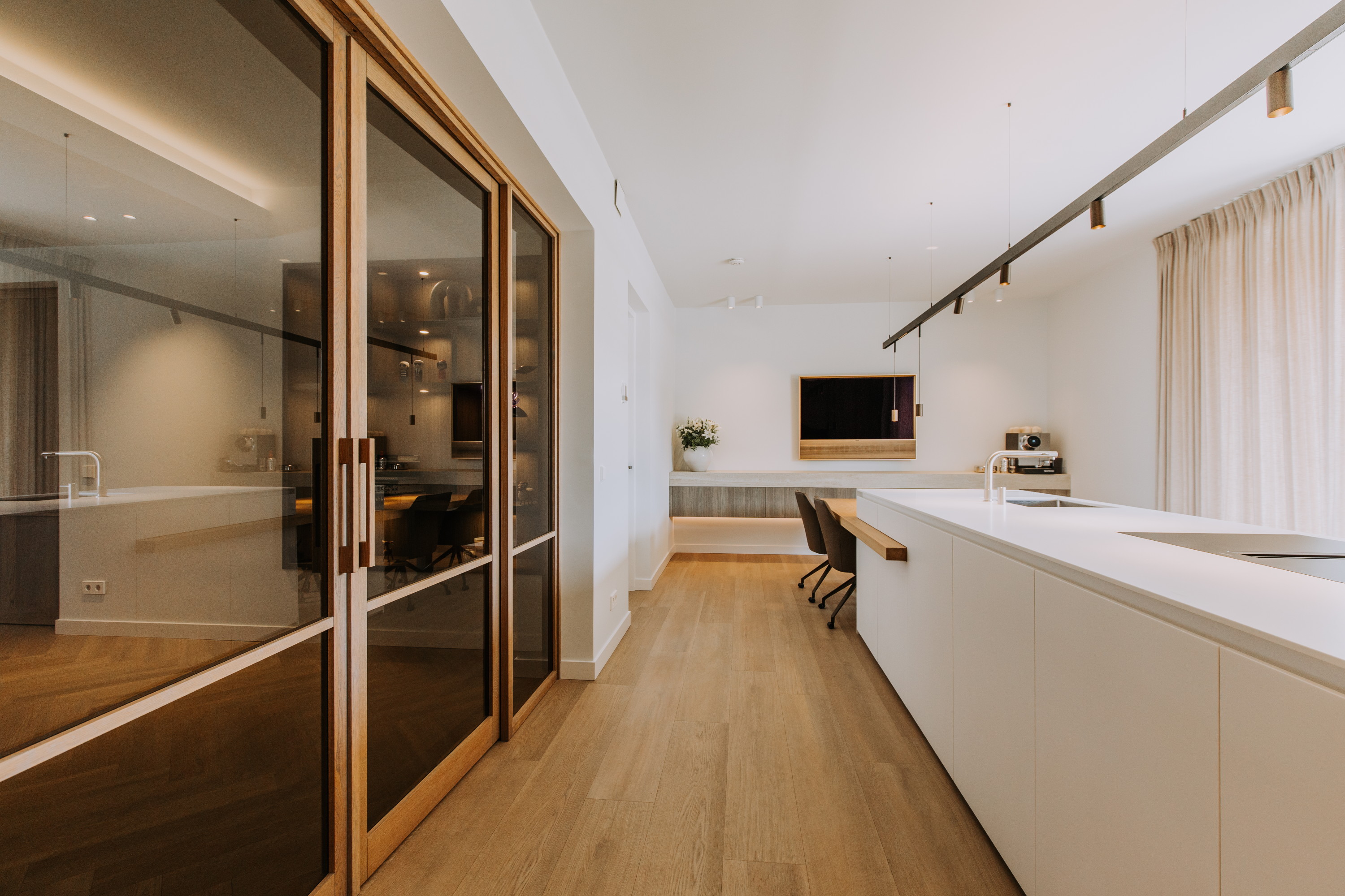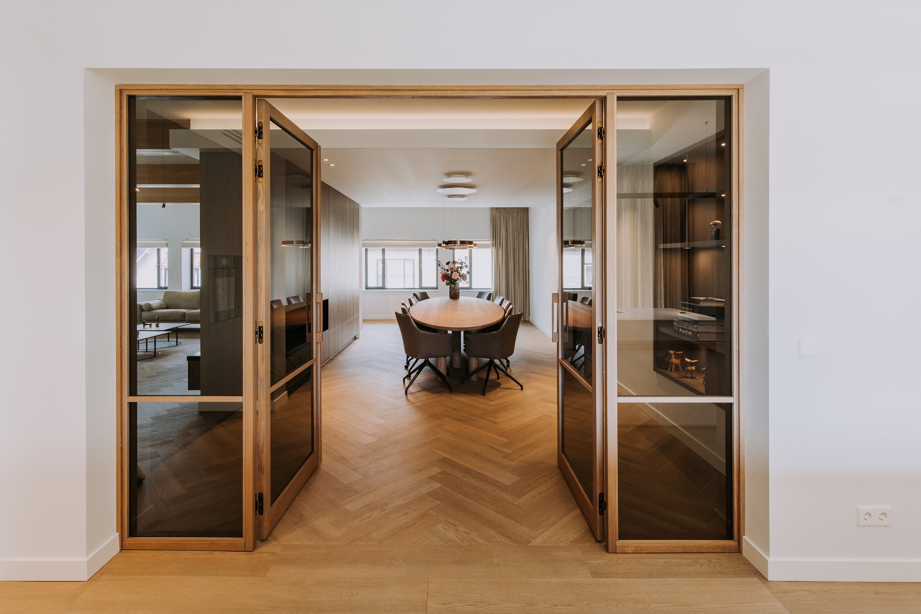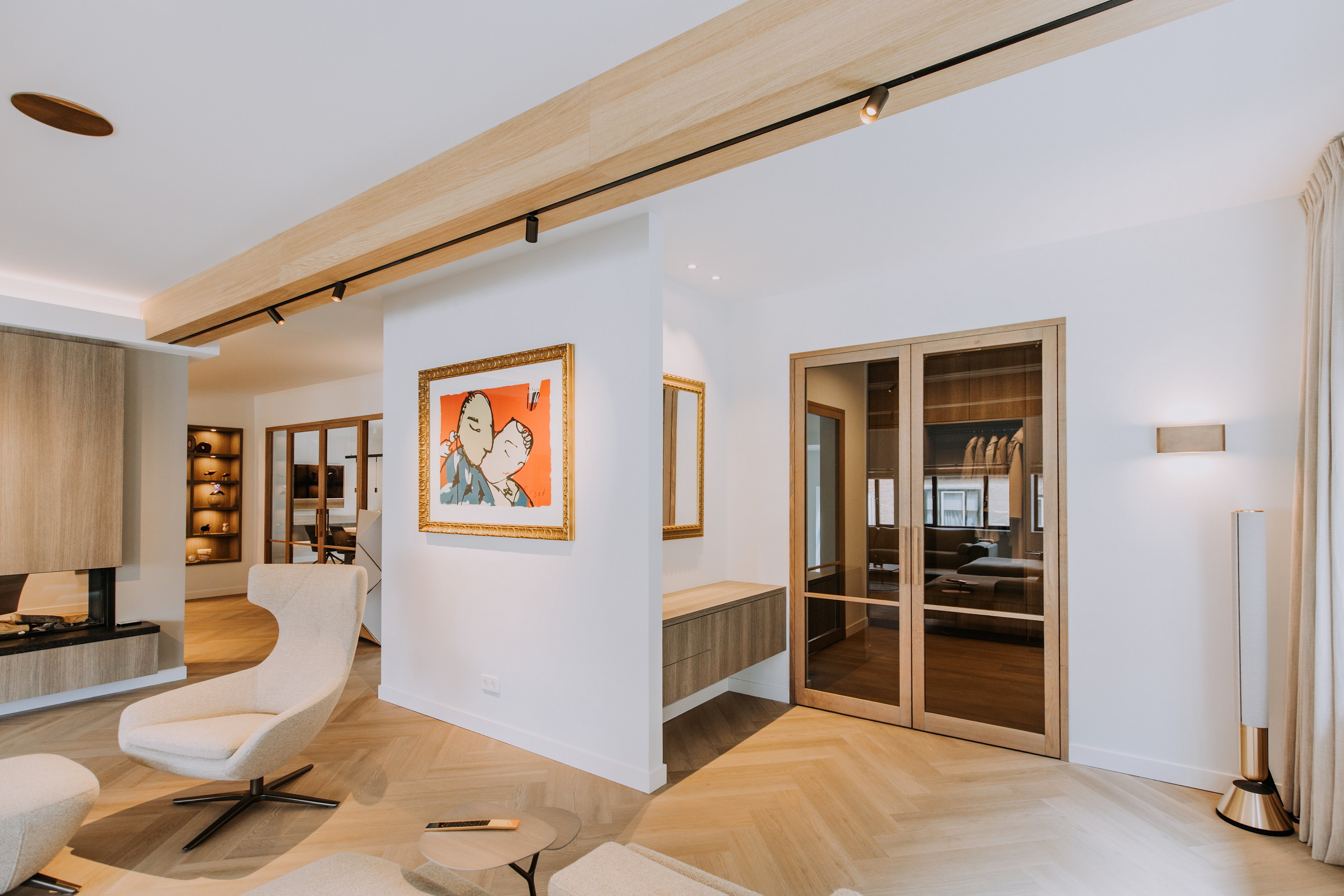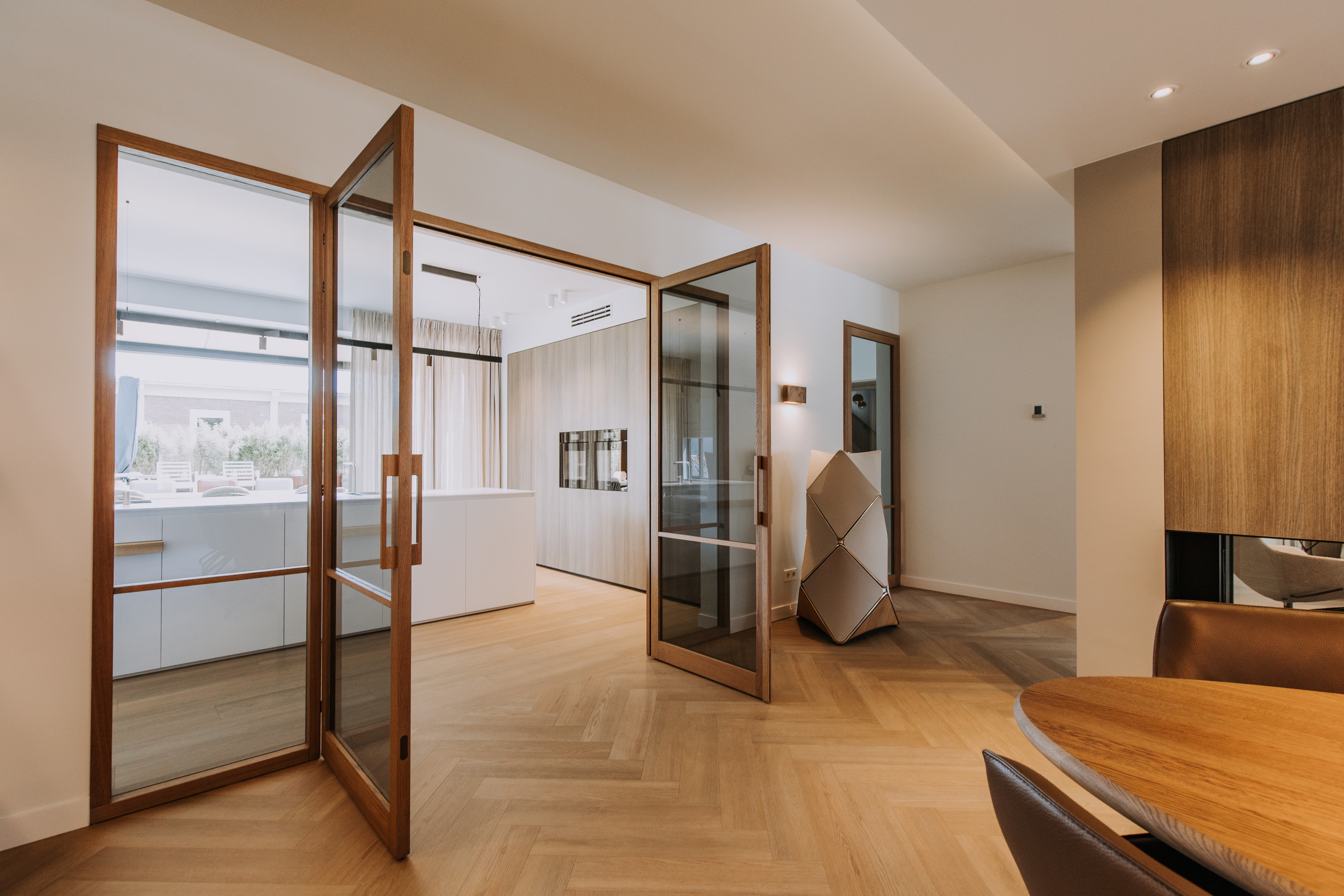 Er zijn speciaal ontworpen maatwerk elementen en -binnendeuren geplaatst, alles is volledig op elkaar afgestemd.