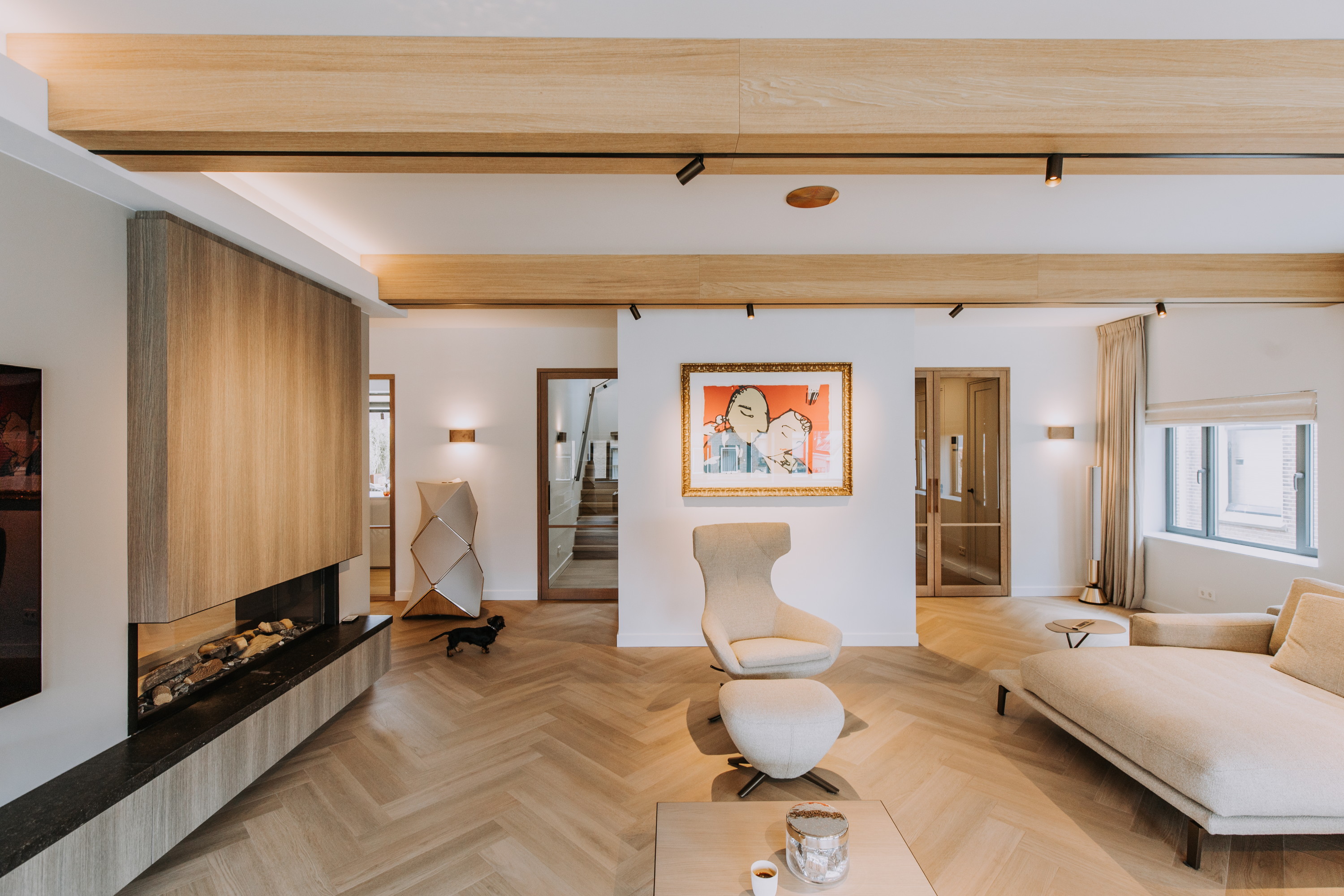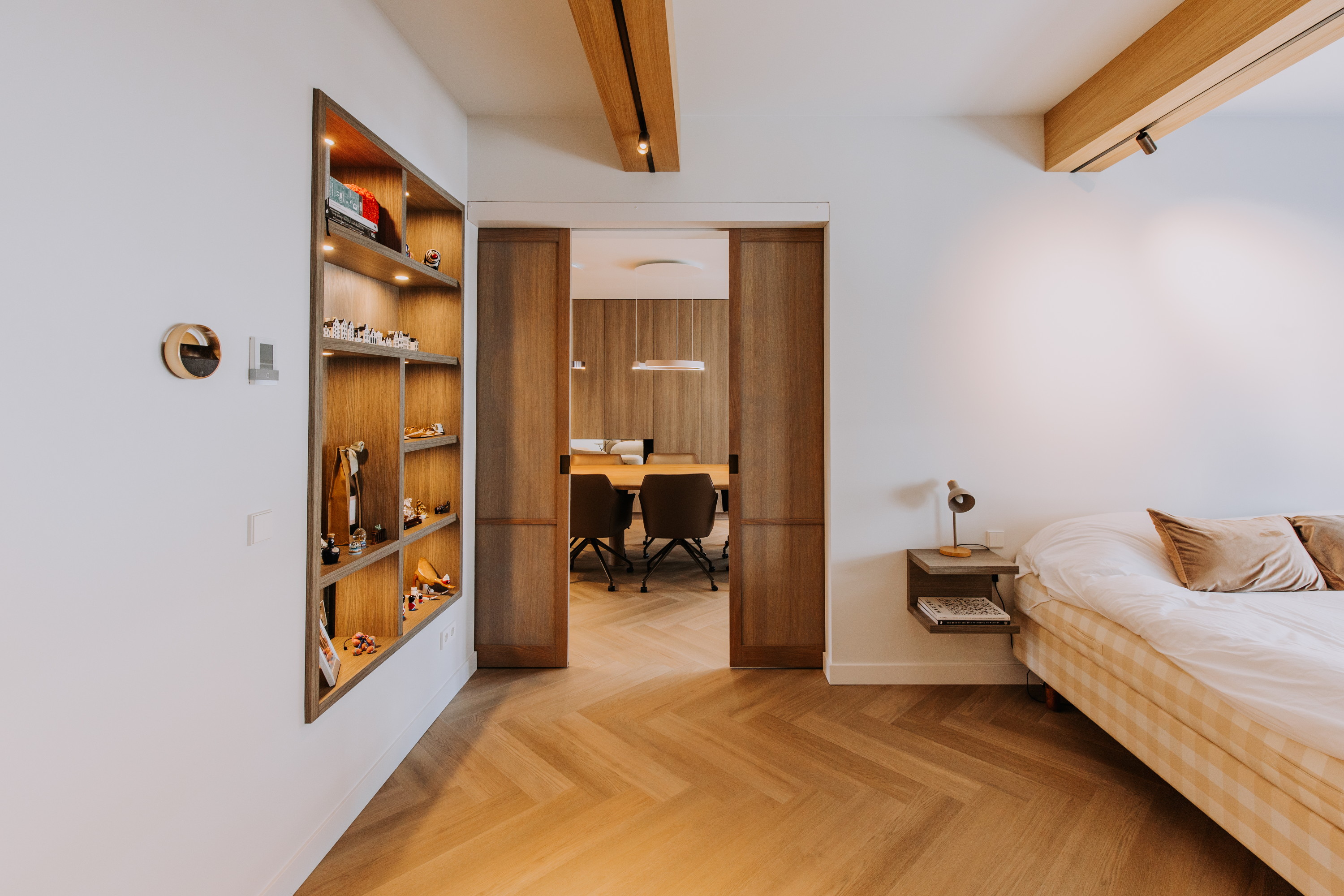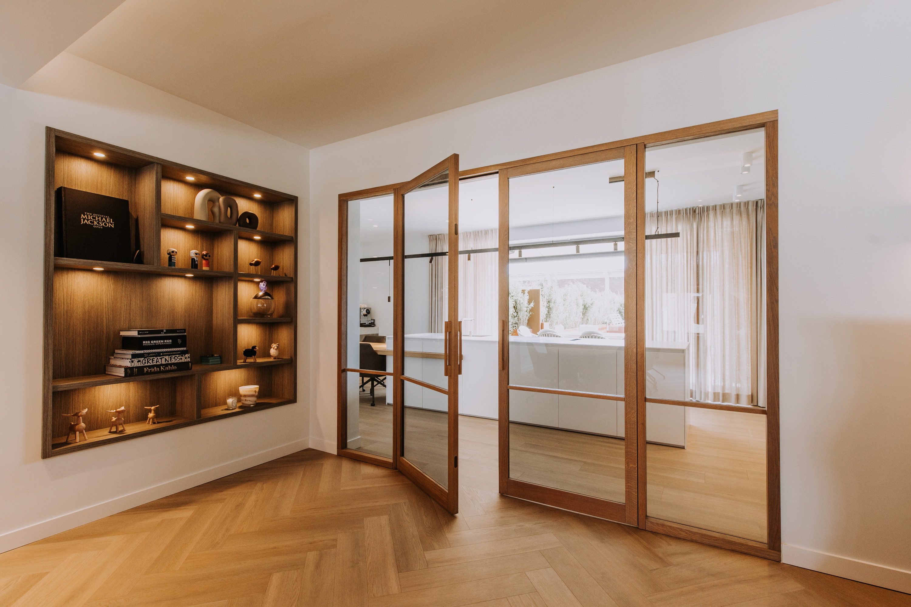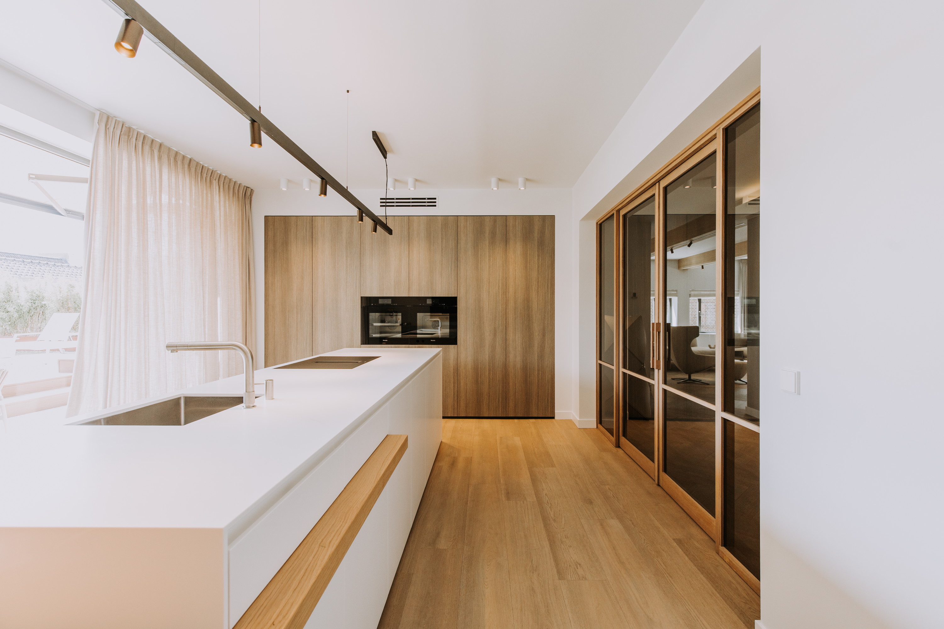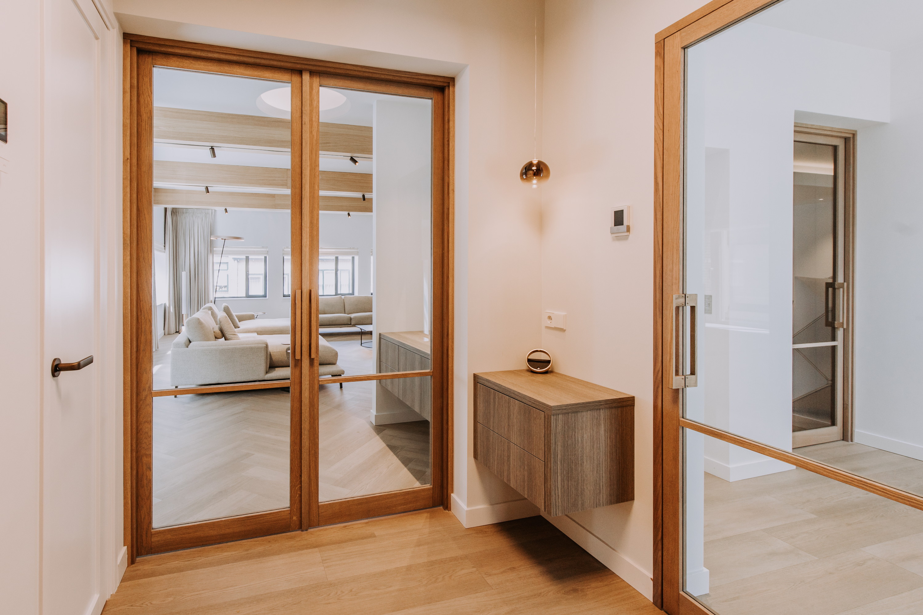 Er zijn speciaal ontworpen maatwerk elementen en -binnendeuren geplaatst, alles is volledig op elkaar afgestemd.